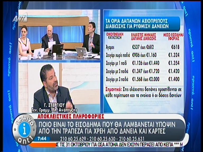 Δείτε στο βίντεο που ακολουθεί τα όρια δαπανών αξιοπρεπούς διαβίωσης για ρύθμιση δανείων, όπως αυτά καθορίστηκαν από το υπουργείο Ανάπτυξης.