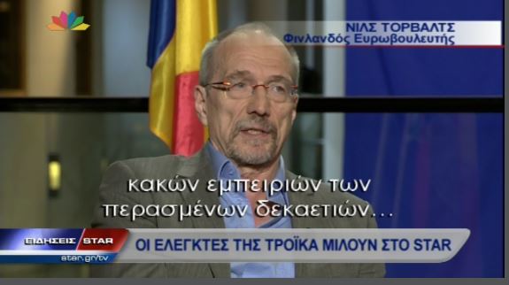 “Τα δύο κόμματα που είχατε στην Ελλάδα, δημιούργησαν ένα τεράστιο κρατικό μηχανισμό. Το ευρώ σας έδωσε πολύ λίγες επιλογές για να βγείτε από την κρίση” λέει χαρακτηριστικά ο Φινλανδός Ευρωβουλευτής Νιλς Τόρβαλτς περιγράφοντας τι έφταιξε.
