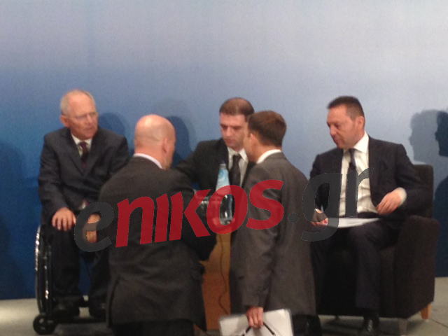 Το παρόν στο ξενοδοχείο Χίλτον, όπου βρίσκεται ήδη ο Γερμανός υπουργός Οικονομικών, Βόλφγκανγκ Σόιμπλε, έδωσε και ο υπουργός Ανάπτυξης, Κωστής Χατζηδάκης.