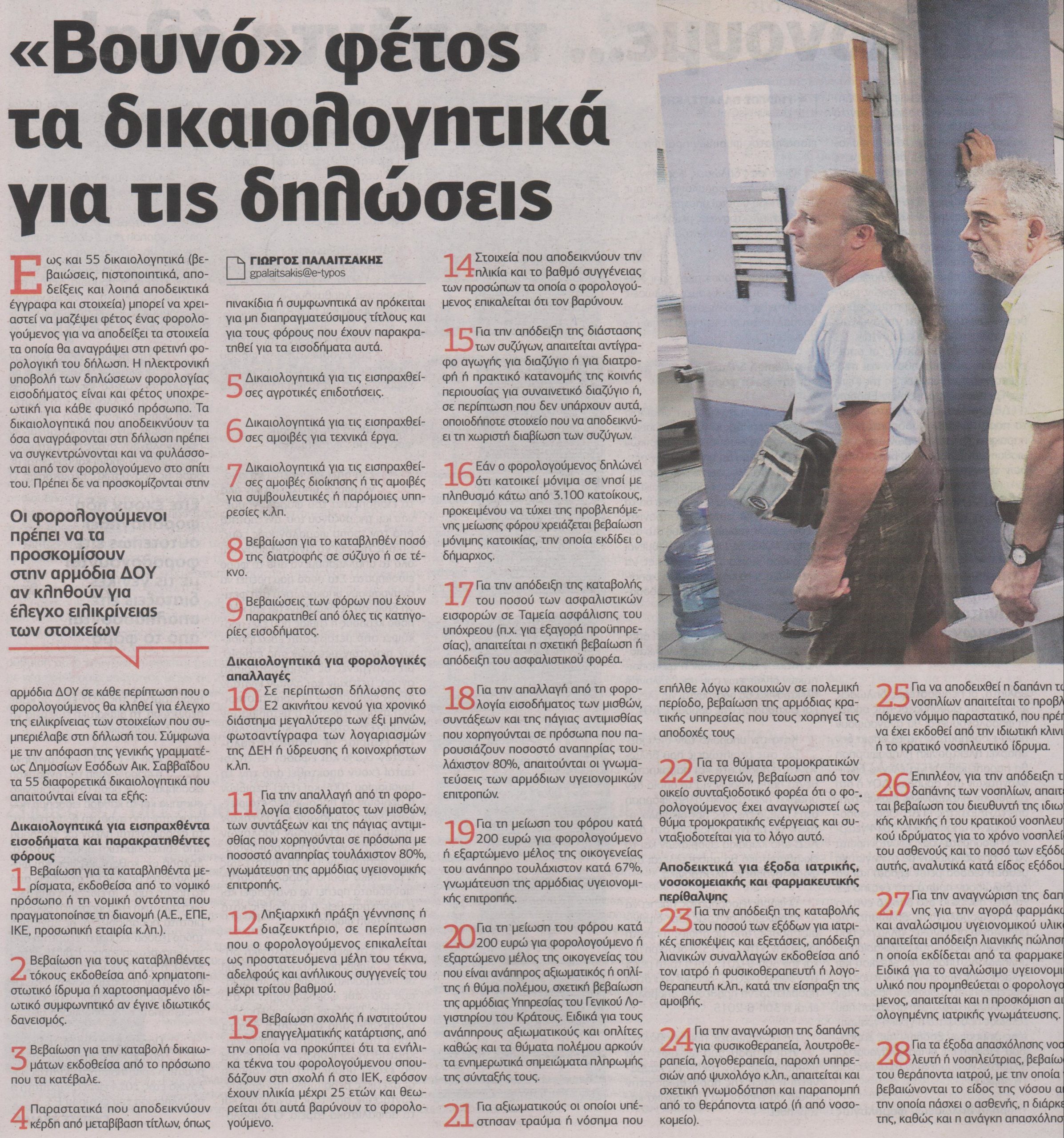 Έως και 55 δικαιολογητικά (βεβαιώσεις, πιστοποιητικά, αποδείξεις και λοιπά αποδεικτικά έγραφα και στοιχεία) μπορεί να χρειαστεί να μαζέψει φέτος ένας φορολογούμενος για να αποδείξει τα στοιχεία τα οποία θα αναγράψει στη φετινή φορολογική του δήλωση.