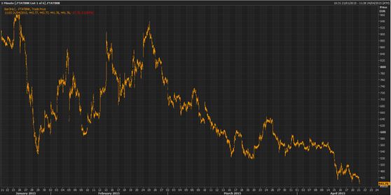 O Γενικός Δείκτης Τιμών στις 12:15 διαμορφώνεται στις 704 μονάδες σημειώνοντας πτώση 3,36%.