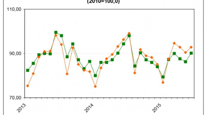 Η βιομηχανική παραγωγή υποχώρησε 4,5% σε σχέση με τον αντίστοιχο μήνα του 2014 έναντι μείωσης 5,2% που σημειώθηκε κατά την αντίστοιχη σύγκριση του έτους 2014 προς το 2013.