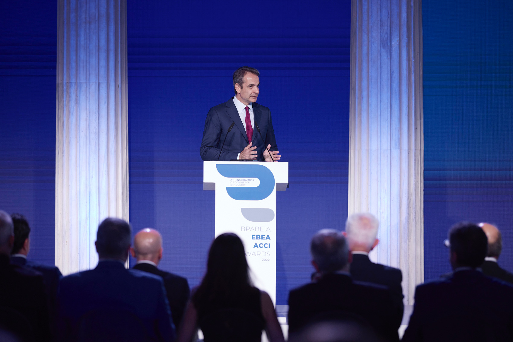 Με κεντρικό ομιλητή τον πρωθυπουργό Κυριάκο Μητσοτάκη, σε εκδήλωση που πραγματοποιήθηκε χθες το βράδυ παρουσία πλήθους επιχειρηματικού και πολιτικού κόσμου στο εμβληματικό Ζάππειο Μέγαρο, το Εμπορικό και Βιομηχανικό Επιμελητήριο Αθηνών τίμησε για μια ακόμη χρονιά το όραμα, τις αξίες και τα επιτεύγματα του επιχειρηματικού κόσμου, απονέμοντας τα ΒΡΑΒΕΙΑ ΕΒΕΑ 2022.