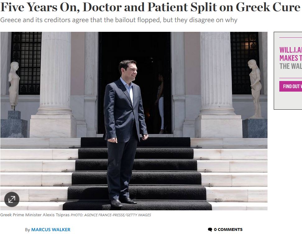 Άλλο ένα σχόλιο για τα πέντε χρόνια «φαγούρα» που προκάλεσε στην Ελλάδα η αποτυχία των προγραμμάτων «σωτηρίας», αφιερώνει η Wall Street Journal.