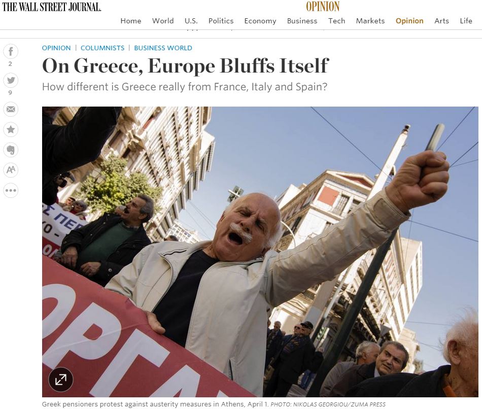 Πόσο διαφορετική είναι η Ελλάδα πραγματικά από τη Γαλλία, την Ιταλία και την Ισπανία αναρωτιέται ο δημοσίευμα στη Wall Street Journal στην online έκδοση.