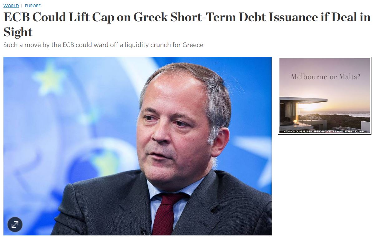 Ο Μπενουά Κερέ, μέλος του Δ.Σ. της ΕΚΤ και άλλοι παράγοντες είχαν ήδη αφήσει να διαρρεύσει αυτή η πλροφορία ως μήνυμα προς την ελληνική κυβέρνηση, μετά τη συνεδρίαση του Euroworking Group την Τετάρτη, όπως μετέδιδε το πρακτορείο Reuters.