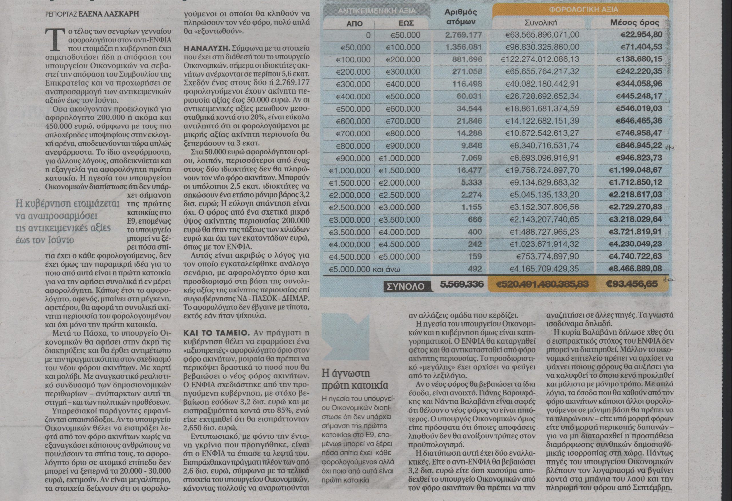 Κάπως έτσι το αφορολόγητο, αφενός, μπαίνει στη μέγκενη, αφετέρου, θα αφορά τη συνολική ακίνητη περιουσία του φορολογουμένου και όχι μόνο την πρώτη κατοικία.