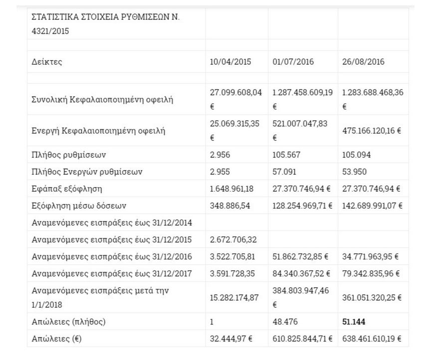 Τη ρύθμιση έχασαν 51.144 οφειλέτες από 105.094 που είχαν ρυθμίσει τα χρέη τους εδώ και ένα έτος. Μετά την απώλεια, το ποσοστό των ασφαλισμένων στον ΟΑΕΕ που έχει ληξιπρόθεσμες οφειλές φθάνει το 80%, ήτοι 538.087 οφειλέτες σε σύνολο 701.148 ασφαλισμένων.