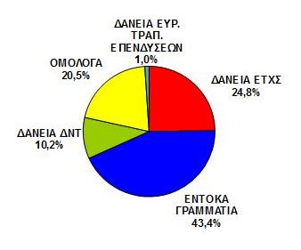 Η κατανομή του Δημόσιου Χρέους της Κεντρικής Κυβέρνησης έχει ως εξής:
