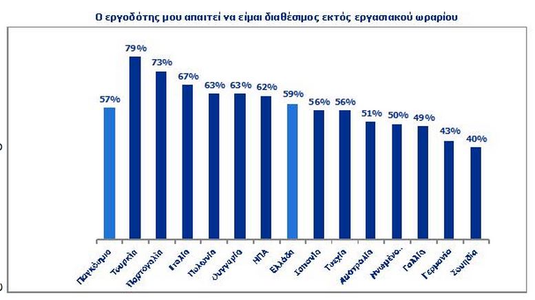 Το 59% των ερωτηθέντων στην Ελλάδα δηλώνει ότι ο εργοδότης τους απαιτεί να είναι διαθέσιμοι και πέρα από το ωράριο εργασίας.