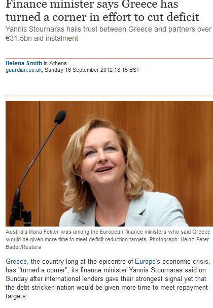 «Υπάρχει περισσότερη εμπιστοσύνη μεταξύ της χώρας και των εταίρων της», ανέφερε σε συνέντευξή του στην εφημερίδα The Guardian ο υπουργός Οικονομικών Γιάννης Στουρνάρας μετά και την ολοκλήρωση του Eurogroup στη Λευκωσία.«Η Ελλάδα έχει στρίψει τη γωνία», σημείωσε με νόημα ο έλληνας υπουργός σημειώνοντας επιπλέον ότι «υπάρχει ακόμη απόσταση να καλυφθεί».Ο κ. Στουρνάρας αναφερόμενος στο επόμενο Eurogroup στις 8 Οκτωβρίου, τόνισε: «Πρέπει να ξεκαθάρισουμε τα πάντα μέσα στις επόμενες εβδομάδες ώστε να μπορούν να μπουν όλα στο τραπέζι». Τέλος ο υπουργός αναφερόμενος στις σχέσεις με το Βερολίνο εκτίμησε ότι υπάρχει «καλύτερη χημεία στις ελληνογερμανικές σχέσεις».