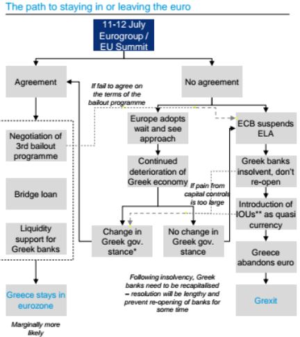 Στο σχέδιο με τα σενάρια Grexit ή συμφωνίας της Deutsche Bank ακολουθείται η αριστερή πλευρά.