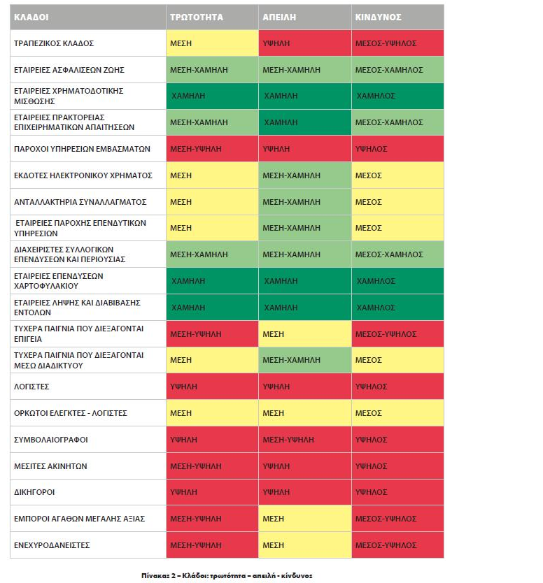 Δικηγόροι, συμβολαιογράφοι, λογιστές και μεσίτες ακινήτων βρίσκονται στη ζώνη υψηλού κινδύνου αναφορικά με ενδεχόμενο ξέπλυμα βρώμικου χρήματος στην Ελλάδα, όπως προκύπτει από την έκθεση.
