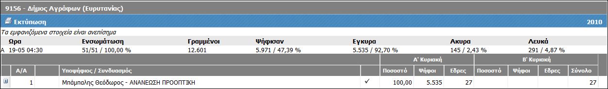 Σαρωτικό ήταν το χθεσινό εκλογικό αποτέλεσμα στον δήμο Αγράφων της περιφέρειας Στερεάς Ελλάδας. Ο υποψήφιος δήμαρχος, κ. Θεόδωρος Μπάμπαλης, που ήταν και ο μόνος που διεκδικούσε την θέση του δημάρχου, συγκέντρωσε το 100% των ψήφων και εξελέγη παμψηφεί από τους δημότες του. Εκλογή-ρεκόρ με ομοφωνία για τον κ. Μπάμπαλη…