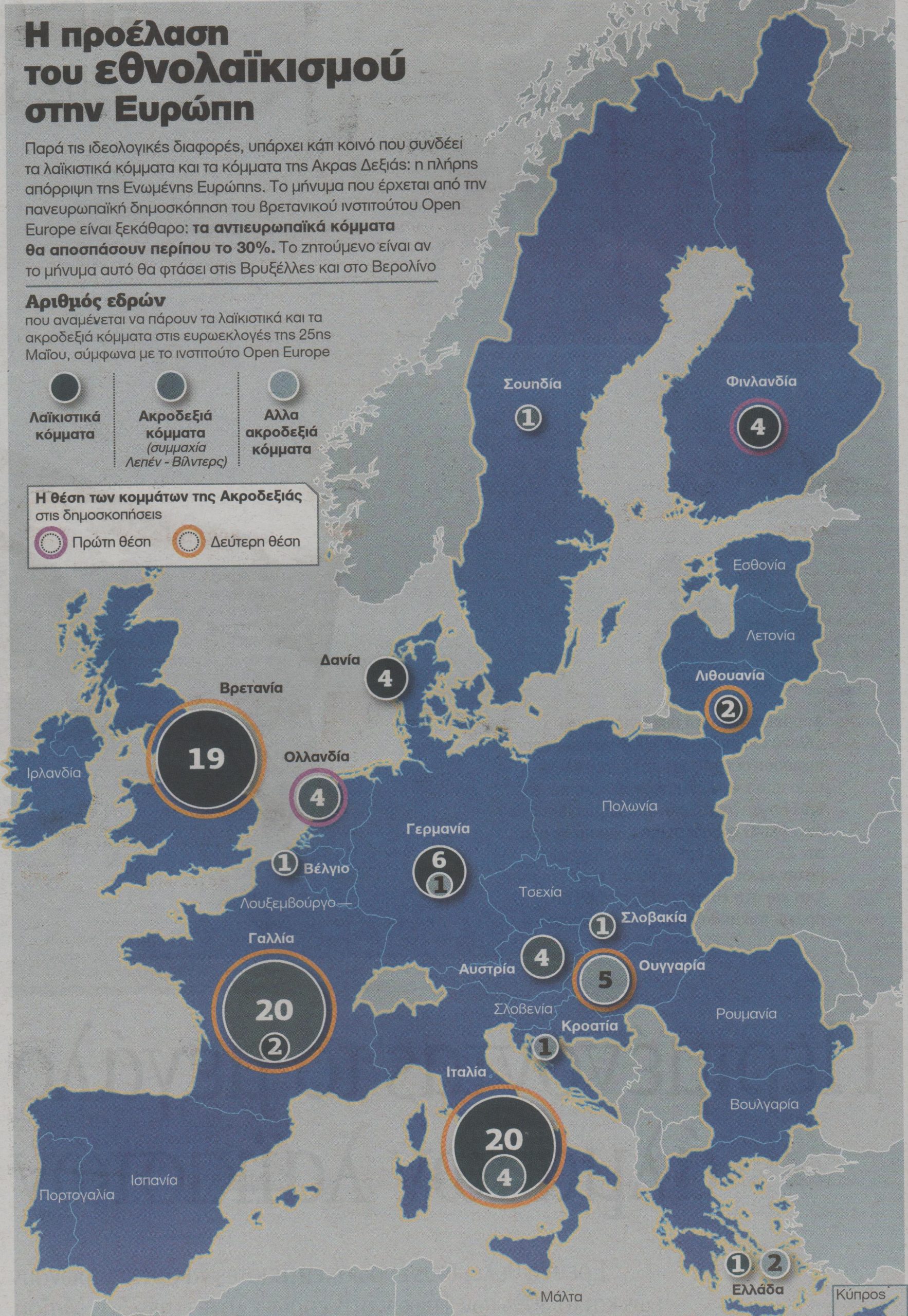 Αυτό σημαίνει ένα πράγμα: ότι το αντιευρωπαϊκό κύμα, που εκφράζουν τόσο τα ευρωσκεπτικιστικά κόμματα της Δεξιάς όσο και της Αριστεράς, γιγαντώνεται, όπως αναφέρει δημοσίευμα της εφημερίδας Τα Νέα.