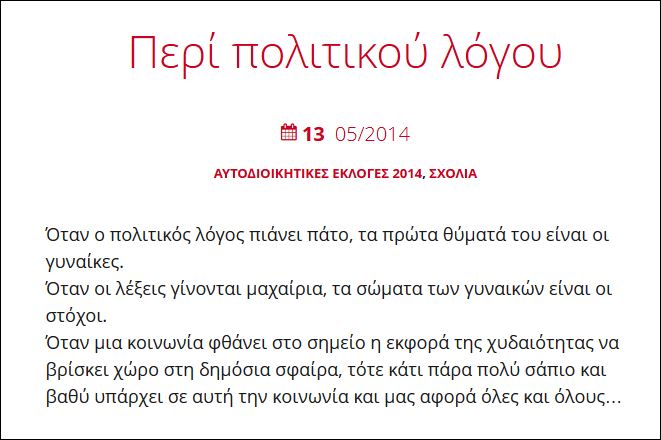 Όταν μια κοινωνία φθάνει στο σημείο η εκφορά της χυδαιότητας να βρίσκει χώρο στη δημόσια σφαίρα, τότε κάτι πάρα πολύ σάπιο και βαθύ υπάρχει σε αυτή την κοινωνία και μας αφορά όλες και όλους…»