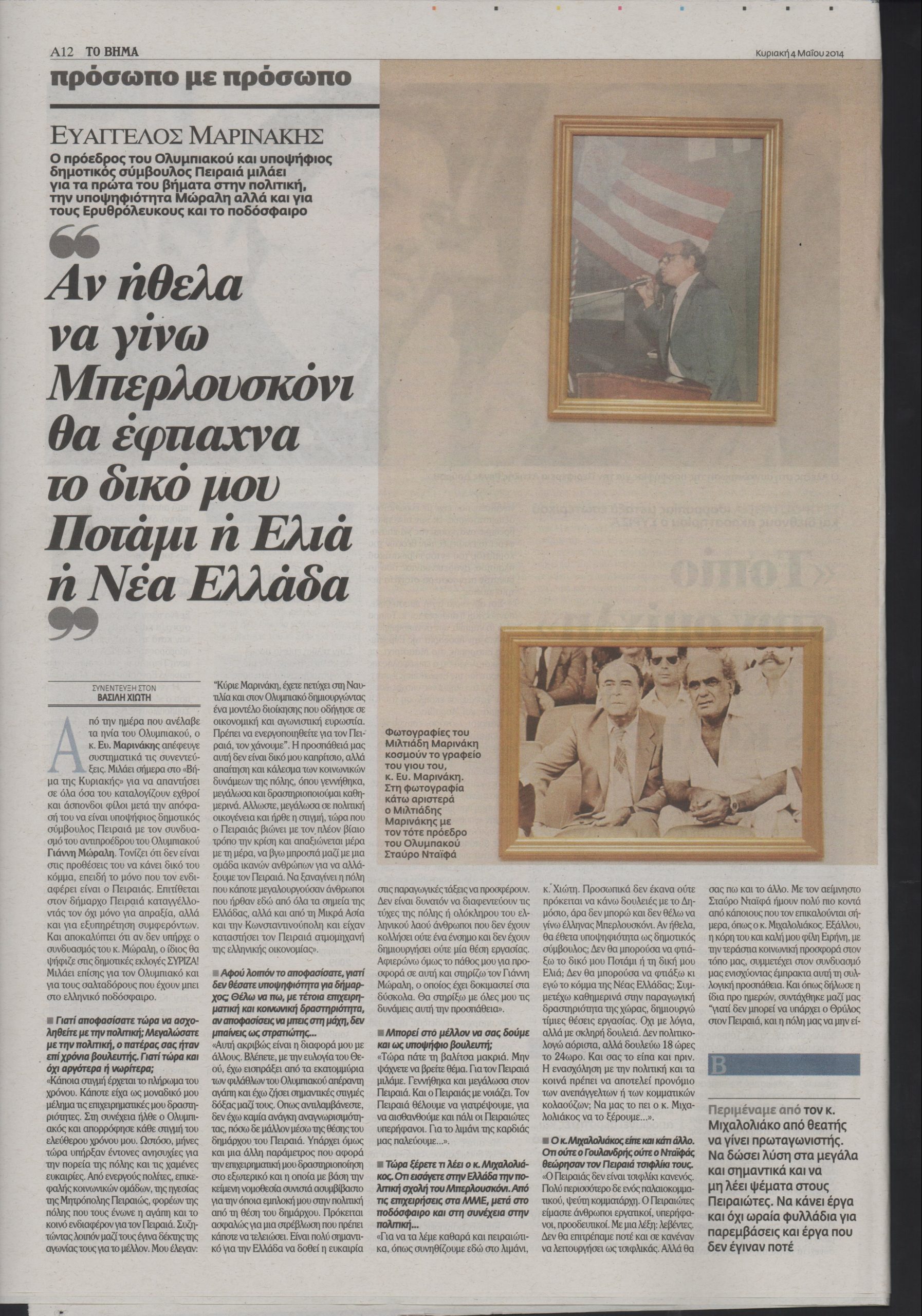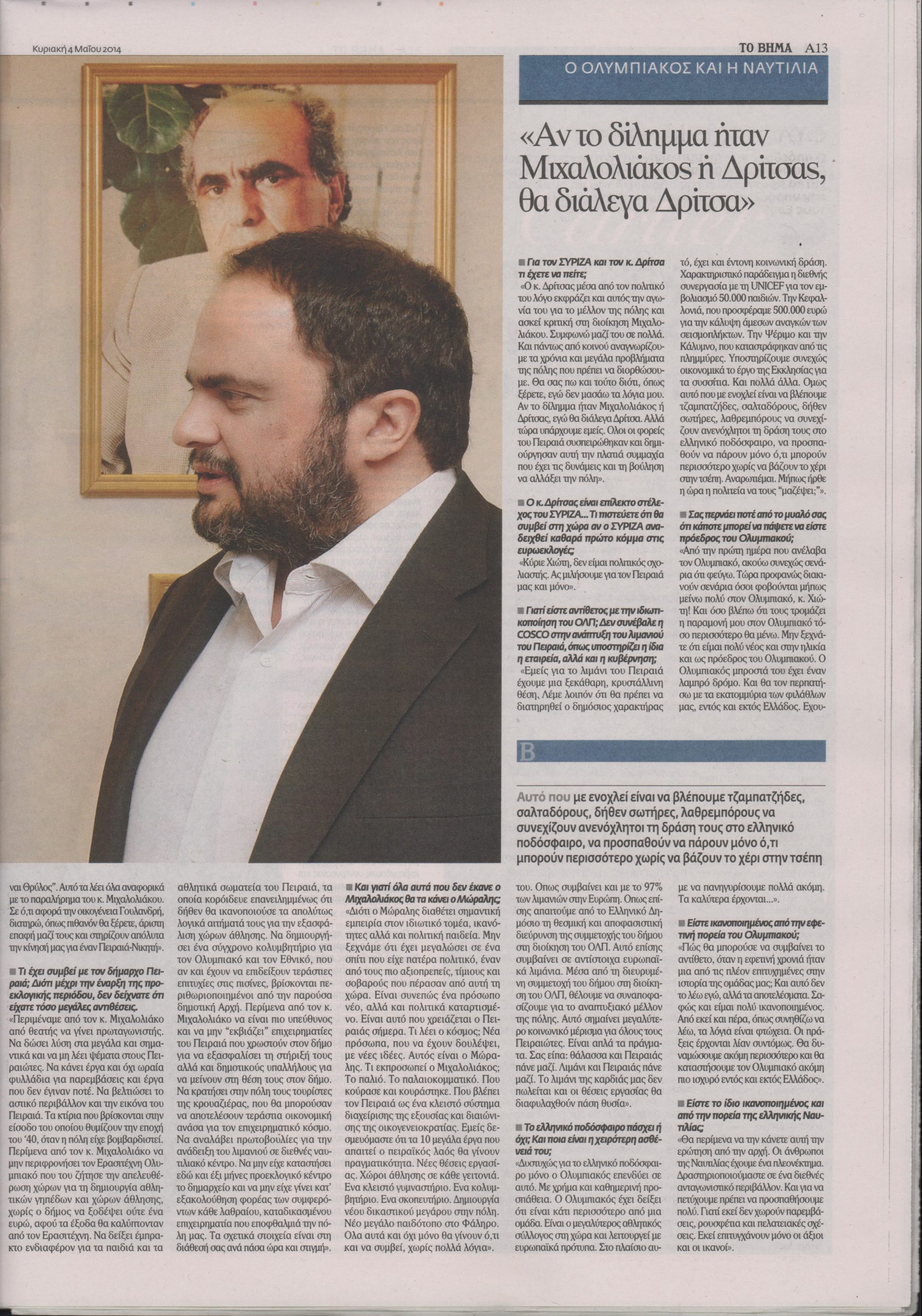 Πατήστε στις φωτογραφίες και διαβάστε αναλυτικά τη συνέντευξη του Βαγγέλη Μαρινάκη, στο “Βήμα της Κυριακής”