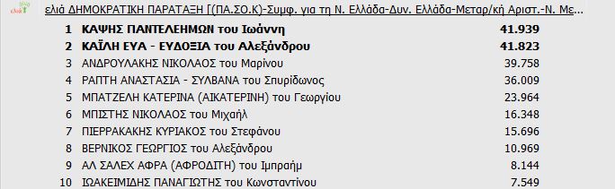 Με καταμετρημένο το 37,46% των σταυρών, ο κύριος Καψής έχει 41.939 και η κυρία Καϊλή έχει 41.823.