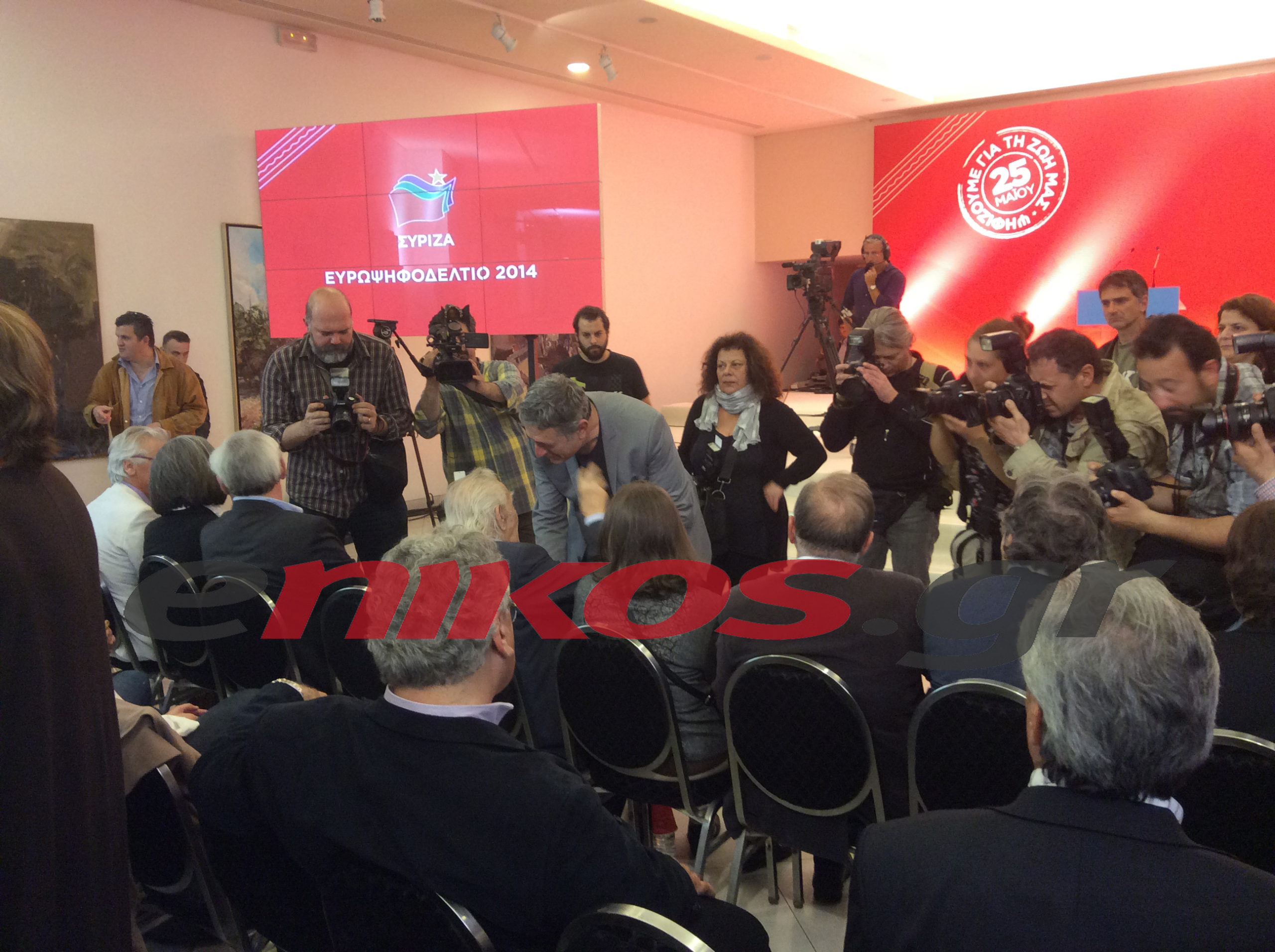 Την τυπική έναρξη της προεκλογικής εκστρατείας του ΣΥΡΙΖΑ, κήρυξε ο Αλέξης Τσίπρας, παρουσιάζοντας το απόγευμα σε εκδήλωση το ευρωψηφοδέλτιο του κόμματος. Όπως φαίνεται και στις φωτογραφίες που έστειλε αναγνώστης του enikos.gr, το παρών έδωσαν οι Παπαδημούλης, Γλέζος, Πελεγρίνης, Χουντής, Κιμούλης, Σκουρλέτης, Παππάς και Κούλογλου.