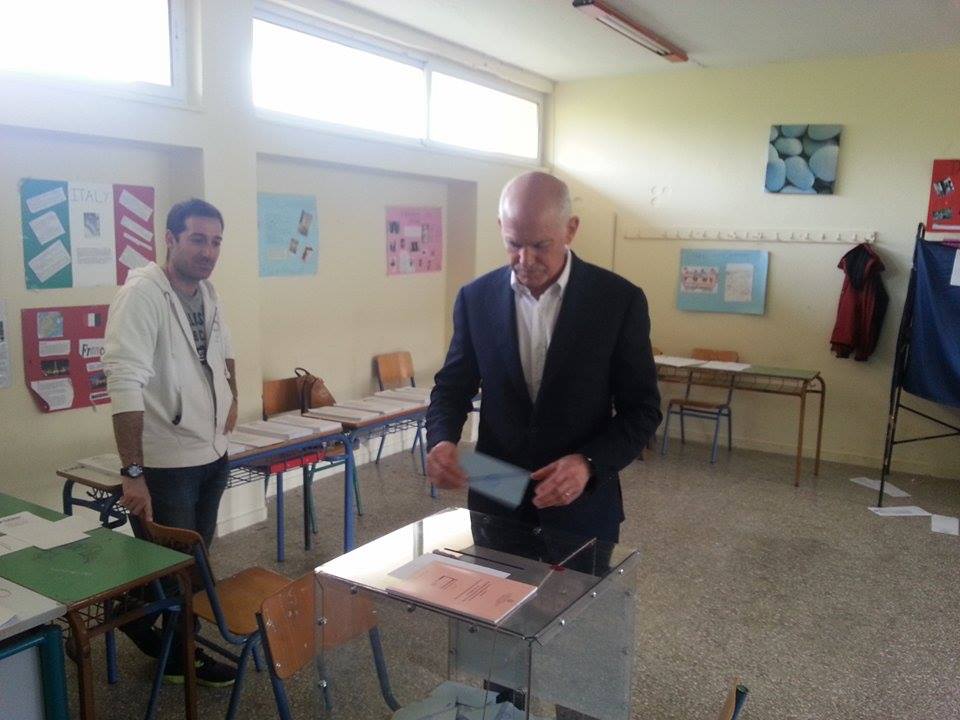 Ο πρώην πρωθυπουργός Γιώργος Παπανδρέου, ο οποίος άσκησε στη Νέα Ερυθραία το εκλογικό του δικαίωμα.