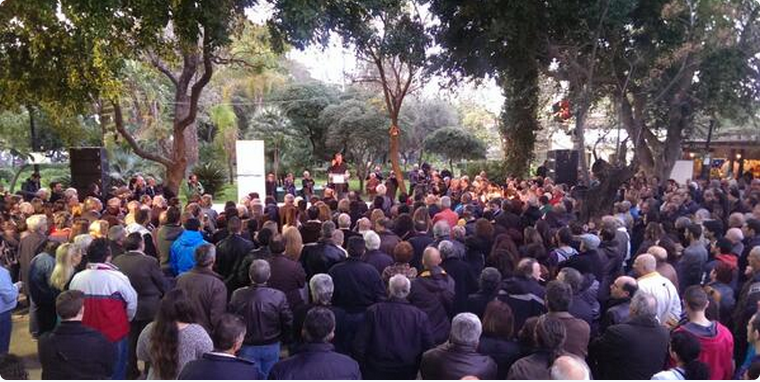 ΦΩΤΟ-Ο Σταύρος Θεοδωράκης μιλάει στο δημοτικό κήπο Χανίων