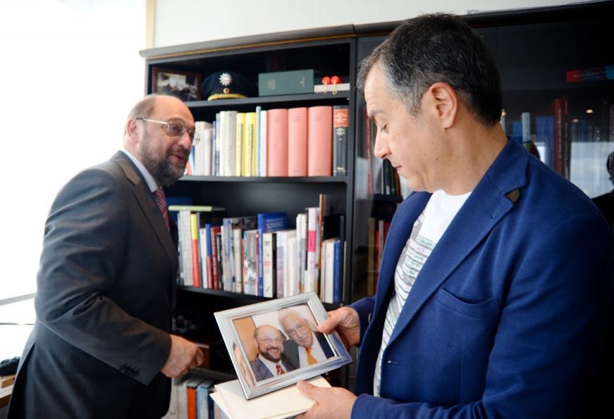 Όπως αναφέρεται στην ιστοσελίδα topotami.gr, «ο Μάρτιν Σουλτς έδειξε ιδιαίτερα ενημερωμένος για τις τελευταίες εξελίξεις στην Ελλάδα και μίλησε για το νόημα της υποψηφιότητάς του. Παραδέχτηκε ότι είναι σημαντικό να αλλάξουν πολλά στην Ευρώπη, με πρώτο και άμεσα αναγκαίο να σταματήσει ο «φανατισμός υπέρ της λιτότητας», που επικράτησε τα τελευταία χρόνια, με βασική ευθύνη της πατρίδας του και δήλωσε έτοιμος να συγκρουστεί αν χρειαστεί προς αυτή την κατεύθυνση και με τη Γερμανίδα καγκελάριο Άνγκελα Μέρκελ».