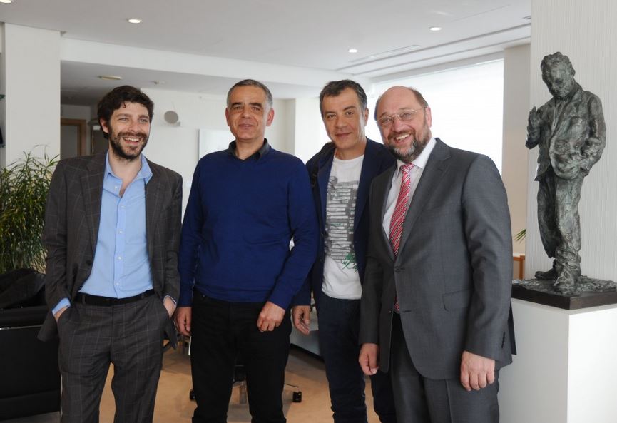 Μετά το τέλος των συναντήσεων με τον Μάρτιν Σουλτς (Σοσιαλιστές), Γκι Φερχόφσταντ (Φιλελεύθεροι) και Ρεμπέκα Χαρμς (Οικολόγοι-Πράσινοι) ο Σταύρος Θεοδωράκης μιλώντας σε Έλληνες δημοσιογράφους στις Βρυξέλλες είπε: