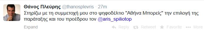 Το ανακοίνωσε ο ίδιος μέσω Twitter: “Στηρίζω με τη συμμετοχή μου στο ψηφοδέλτιο “Αθήνα Μπορείς” την επιλογή της παράταξης και του προέδρου τον Άρη Σπηλιωτόπουλο”