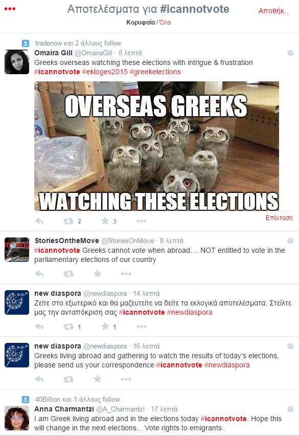 Στο #icannotvote οι Έλληνες του εξωτερικού διαμαρτύρονται μέσω των μέσων κοινωνικής δικτύωσης για τον αποκλεισμό τους από τις βουλευτικές εκλογές.