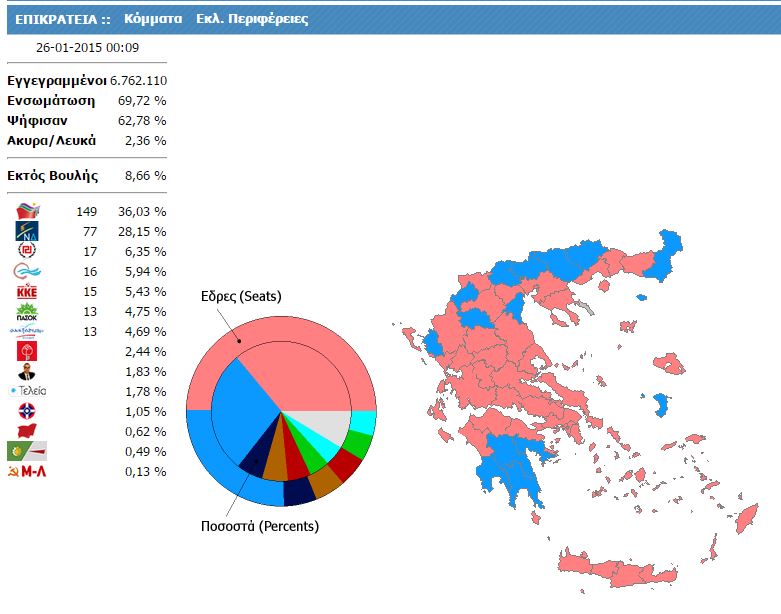 ΣΥΡΙΖΑ: 36,03 %, έδρες 149