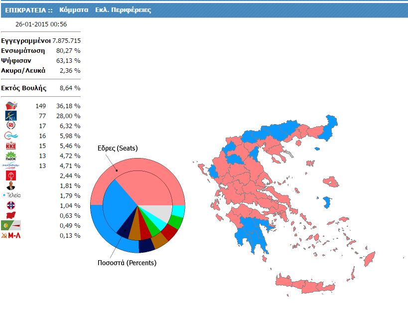 ΣΥΡΙΖΑ: 36,19%, έδρες 149