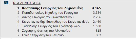 Ο Γιώργος Κασαπίδης προηγείται για τη Νέα Δημοκρατία στην Κοζάνη. Συγκεκριμένα ο κ. Κασαπίδης, ο οποίος επέστρεψε στη Νέα Δημοκρατία μετά το “ναι” στην Προεδρική εκλογή, έχει πάρει μέχρι τώρα 4.165 σταυρούς, έναντι 3.354 του Μιχάλη Παπαδόπουλου. Η Νέα Δημοκρατία παίρνει μία έδρα στην Κοζάνη.