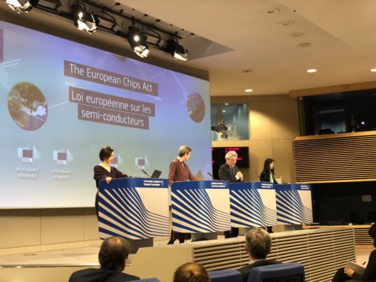 Ένα σχέδιο ύψους 43 δισ. ευρώ για δημόσιες και ιδιωτικές επενδύσεις σε τσιπ (ημιαγωγούς) έως το 2030 παρουσίασε η Ευρωπαϊκή Επιτροπή. Παρουσιάζοντας την πρωτοβουλία «European Chips Act», ο Επίτροπος για θέματα Εσωτερικής Αγοράς Τιερί Μπρετόν τόνισε ότι στόχος είναι να διπλασιαστεί το μερίδιο της ΕΕ στην παραγωγή τσιπ στην παγκόσμια αγορά, που σήμερα ανέρχεται μόλις στο 10%, και παράλληλα να μειώσει την εξάρτησή της από χώρες της Ασίας, κυρίως από την Ταϊβάν και την Κορέα.