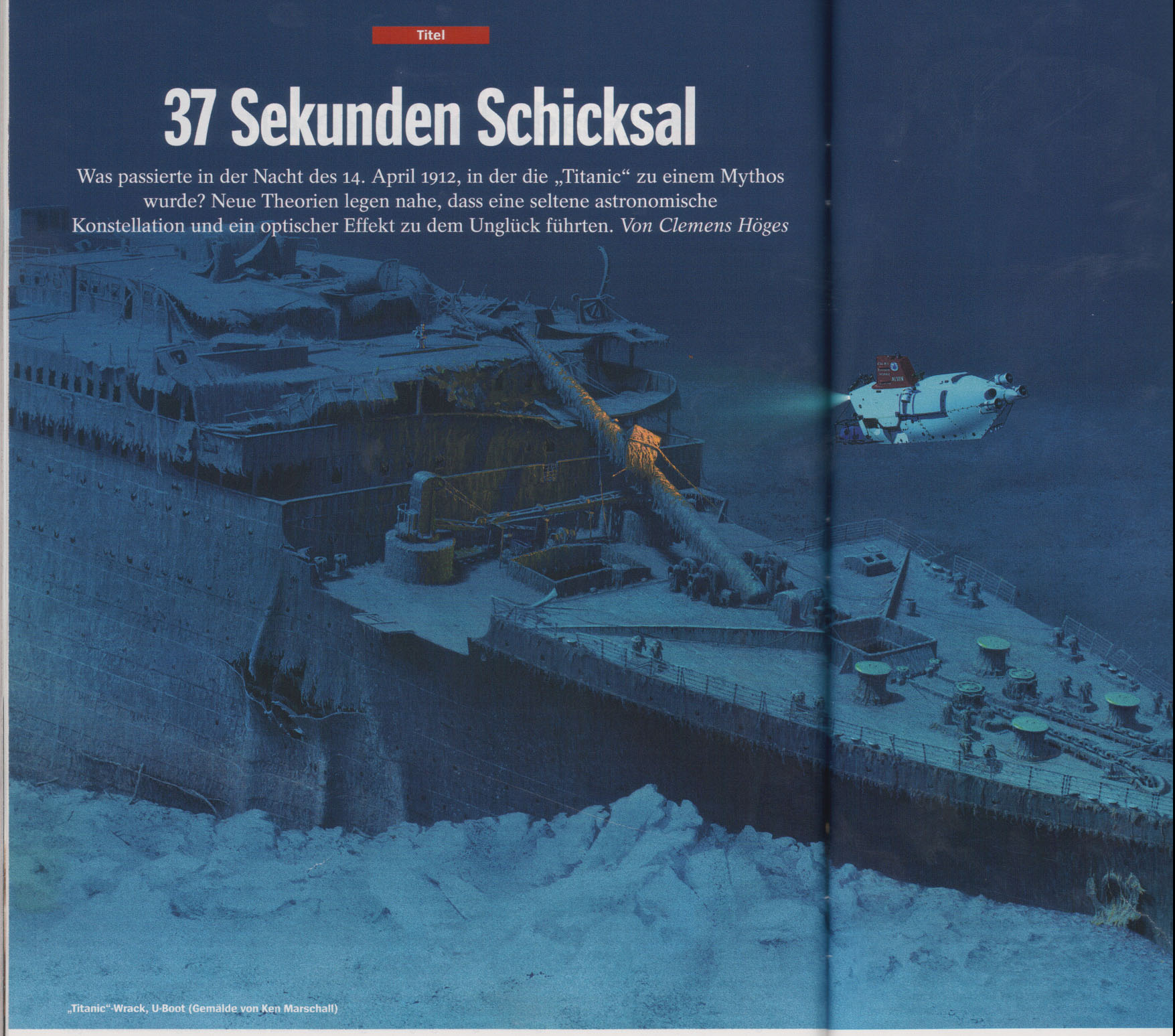 Εν όψει της επετείου της τραγωδίας του Τιτανικού, που φέτος κλείνει 100 χρόνια από τη μέρα που βυθίστηκε, στις 14 Απριλίου του 2012, το γερμανικό περιοδικό Spiegel δημοσιεύει ένα εκτενές αφιέρωμα για το χρονικό της φοβερής ιστορίας, κατά το οποίο παραθέτει και ένα πολύ ενδιαφέρον φωτογραφικό υλικό. Δείτε τις φωτογραφίες.Το κουφάρι του Τιτανικού: