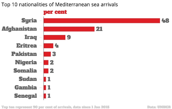 Δείτε αναλυτικά στον πίνακα που ακολουθεί από που προέρχονται οι πρόσφυγες που διασχίζουν τη Μεσόγειο: