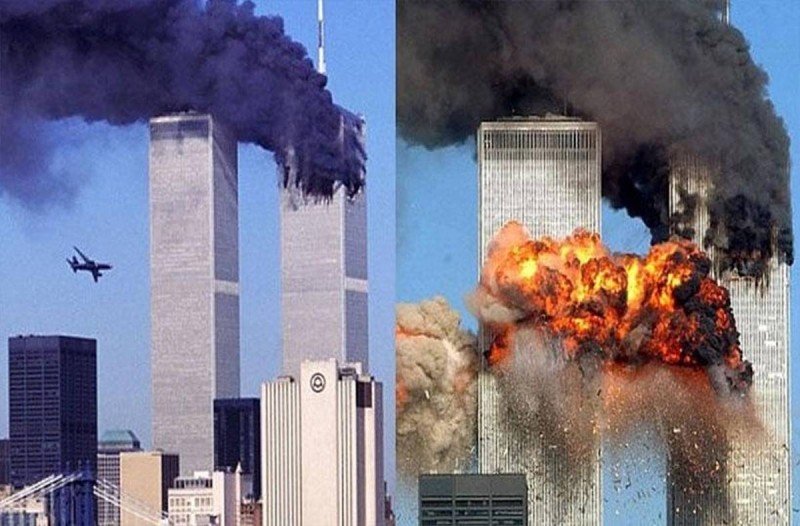 Δύο αεροπλάνα χτύπησαν τους Δίδυμους Πύργους του Παγκόσμιου Κέντρου Εμπορίου στη Νέα Υόρκη. Το δεύτερο χτύπημα έγινε 17 λεπτά μετά το πρώτο.