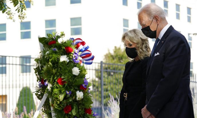 Ο Αμερικανός πρόεδρος Τζο Μπάιντεν ολοκλήρωσε χθες τις επισκέψεις του στις επιμνημόσυνες τελετές για τα θύματα της 11ης Σεπτεμβρίου, είκοσι χρόνια μετά τις χειρότερες επιθέσεις στην ιστορία των ΗΠΑ, μεταβαίνοντας στο Πεντάγωνο, κοντά στην Ουάσινγκτον, όπου ένα αεροπλάνο συνετρίβη, σκοτώνοντας 184 άτομα, σε μια από τις τρομοκρατικές επιθέσεις εκείνης της ημέρας.