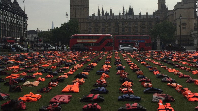 Με 2.500 σωσίβια γέμισε η πλατεία μπροστά από το βρετανικό κοινοβούλιο στο Λονδίνο το βράδυ της Κυριακής, στο πλαίσιο δράσης της International Rescue Committee για τους πρόσφυγες, ενόψει της Συνόδου του ΟΗΕ στη Νέα Υόρκη.