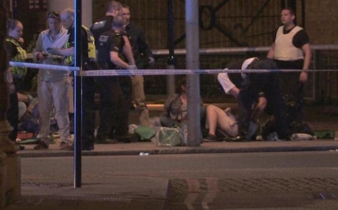 Νέα τρομοκρατική επίθεση σημειώθηκε χθες Σάββατο το βράδυ στην καρδιά του Λονδίνου, όπου δράστες έριξαν το φορτηγάκι στο οποίο επέβαιναν πάνω σε πεζούς στη Γέφυρα του Λονδίνου προτού επιτεθούν με μαχαίρια εναντίον περαστικών στη γειτονική περιοχή Μπόροου Μάρκετ, με αποτέλεσμα να σκοτωθούν τουλάχιστον επτά άνθρωποι.
