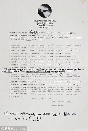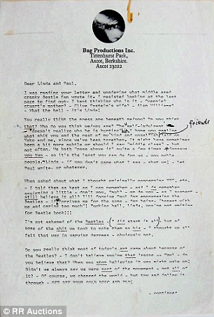 Μία οργισμένη επιστολή του Τζον Λένον στον Πολ και τη Λίντα ΜακΚάρτνεϊ, γραμμένη λίγο μετά τη διάλυση των Beatles, πουλήθηκε σε δημοπρασία για 30.000 δολάρια.