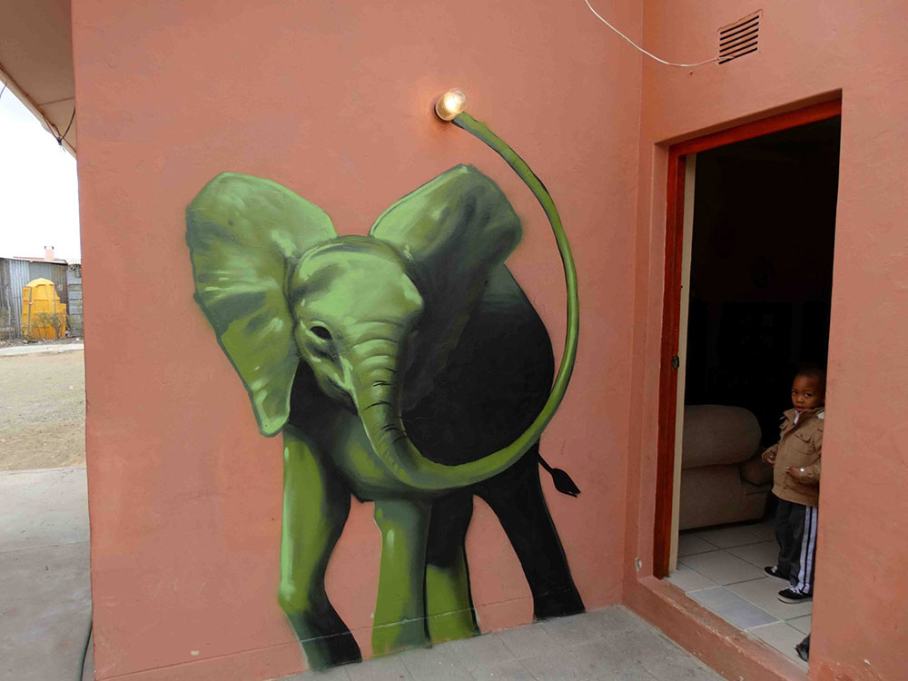 Ο καλλιτέχνης του δρόμου Φάλκο γέμισε με ελέφαντες τους δρόμους της Νότιας Αφρικής, ενώ προσόψεις σπιτιών και δρόμων απέκτησαν αέρα… σαφάρι.