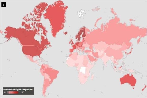 Στοιχεία-σοκ φέρνει στο φως έκθεση της εταιρείας McKinsey για την πρόσβαση του παγκόσμιου πληθυσμού στο διαδίκτυο. Σύμφωνα με τα στοιχεία της έρευνας, περίπου 4 δισεκατομμύρια άνθρωποι, αριθμός που αντιστοιχεί στο 60% τουν πληθυσμού, δεν απολαμβάνουν υπηρεσίες ίντερνετ ενώ εκτιμάται ότι ένα δισεκατομμύριο άνθρωποι θα έχουν αποκτήσει πρόσβαση μέχρι το 2017.