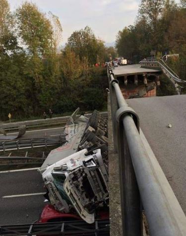 Σύμφωνα με τις μέχρι τώρα πληροφορίες, η γέφυρα κατέρρευσε ενώ περνούσε ένα μεγάλο φορτηγό το οποίο κατά την πτώση του συνέθλιψε δύο αυτοκίνητα.