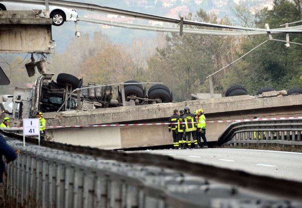 Ένας πολίτης έχασε την ζωή του και τέσσερις τραυματίσθηκαν από κατάρρευση ανισόπεδης γέφυρας σε περιφερειακό δρόμο, κοντά στην πόλη Κόμο της βόρειας Ιταλίας.