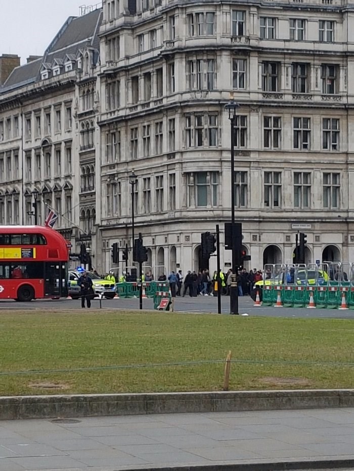 Ένας ρεπόρτερ του BBC έγραψε εξάλλου στο Twitter ότι είδε δύο μαχαίρια πεσμένα στο έδαφος στο Γουάιτχολ και το ένα από αυτά ήταν ένα μεγάλο μαχαίρι του ψωμιού. Επιβεβαίωσε επίσης ότι έχει γίνει μια σύλληψη και δεν υπάρχουν τραυματισμοί.