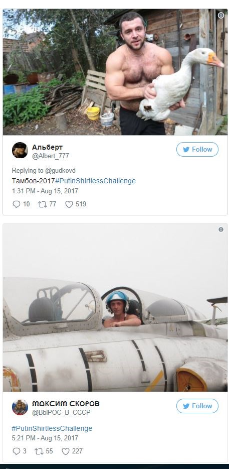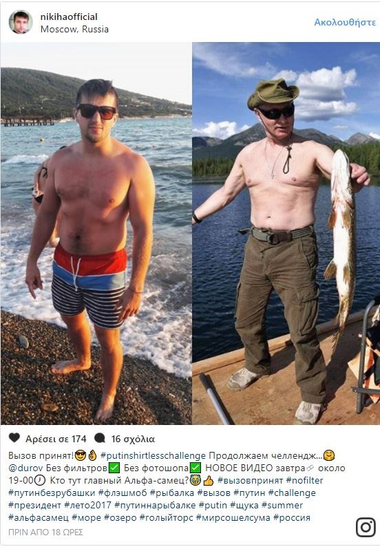 Κάποιοι το είδαν ως ευκαιρία να επιδείξουν το γυμνασμένο σώμα τους, ενώ άλλοι ποστάρουν εκτός από τη δική τους και τη φωτογραφία του Ρώσου προέδρου προκειμένου οι χρήστες του διαδικτύου να μπορούν να κάνουν άμεσα σύγκριση.