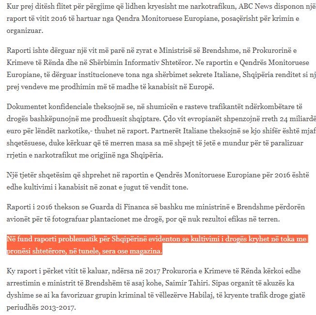 Πηγή ρεπορτάζ: gsh.al Αυτό είναι το αλβανικό δημοσίευμα, σε bold η αναφορά στην καλλιέργεια σε κρατικές ιδιοκτησίες: