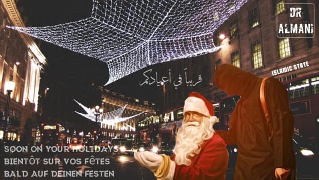 Σε προηγούμενες αφίσες του ISIS, βλέπουμε τον Άγιο Βασίλη να γονατίζει μπροστά από έναν τζιχαντιστή στην Regent Street του Λονδίνου, έναν άλλο τζιχαντιστή να κρατά ένα αιματοβαμμένο μαχαίρι στη χριστουγεννιάτικη αγορά του Παρισιού, και τον Άγιο Βασίλη – αυτή τη φορά στη Νέα Υόρκη- να στέκεται όρθιος δίπλα από ένα κουτί με εκρηκτικά, κοιτώντας την Times Square.
