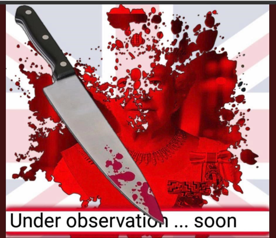 Η τρομοκρατική οργάνωση εκτοξεύει επίσης απειλές και κατά της βασίλισσας Ελισάβετ. Στην αφίσα που απειλείται η βασίλισσα απεικονίζεται σε μια κηλίδα από αίμα και δίπλα υπάρχει ένα μαχαίρι.