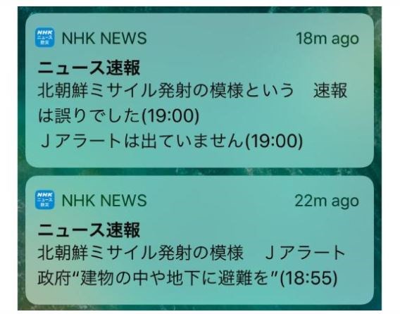 Μια προειδοποίηση για εκτόξευση πυραύλου από τη Βόρεια Κορέα, έκανε η δημόσια τηλεόραση της Ιαπωνίας ΝΗΚ στον ιστότοπό της, ενώ καλούσε τους κατοίκους να σπεύσουν σε καταφύγια. Λίγα λεπτά αργότερα ωστόσο, το κανάλι έσπευσε να παραδεχτεί ότι έκανε λάθος και να το διορθώσει.